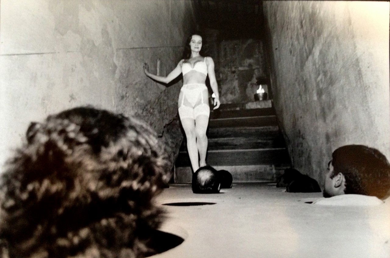 Enfim embarcados em uma carreta-instalação multimídia, e acomodados em cadeirinhas suspensas por molas no teto, os passageiros já mergulhavam em um mundo completamente desconhecido e, só na aparência, sem sentido. A primeira experiência soava provocante. Em poucos minutos, em completa escuridão, já ouviam vozes que sussuravam em seus ouvidos fragmentos de histórias picantes e sensuais. Inesperadamente a ação era abortada pela presença de uma videocriatura, cujo feto aterrorizante passava a relatar os acontecimentos futuros.
