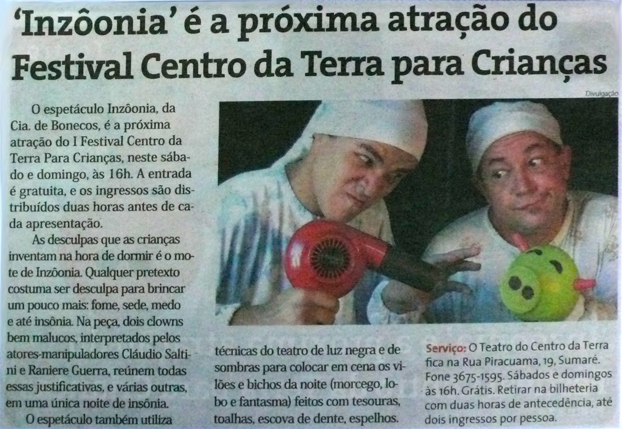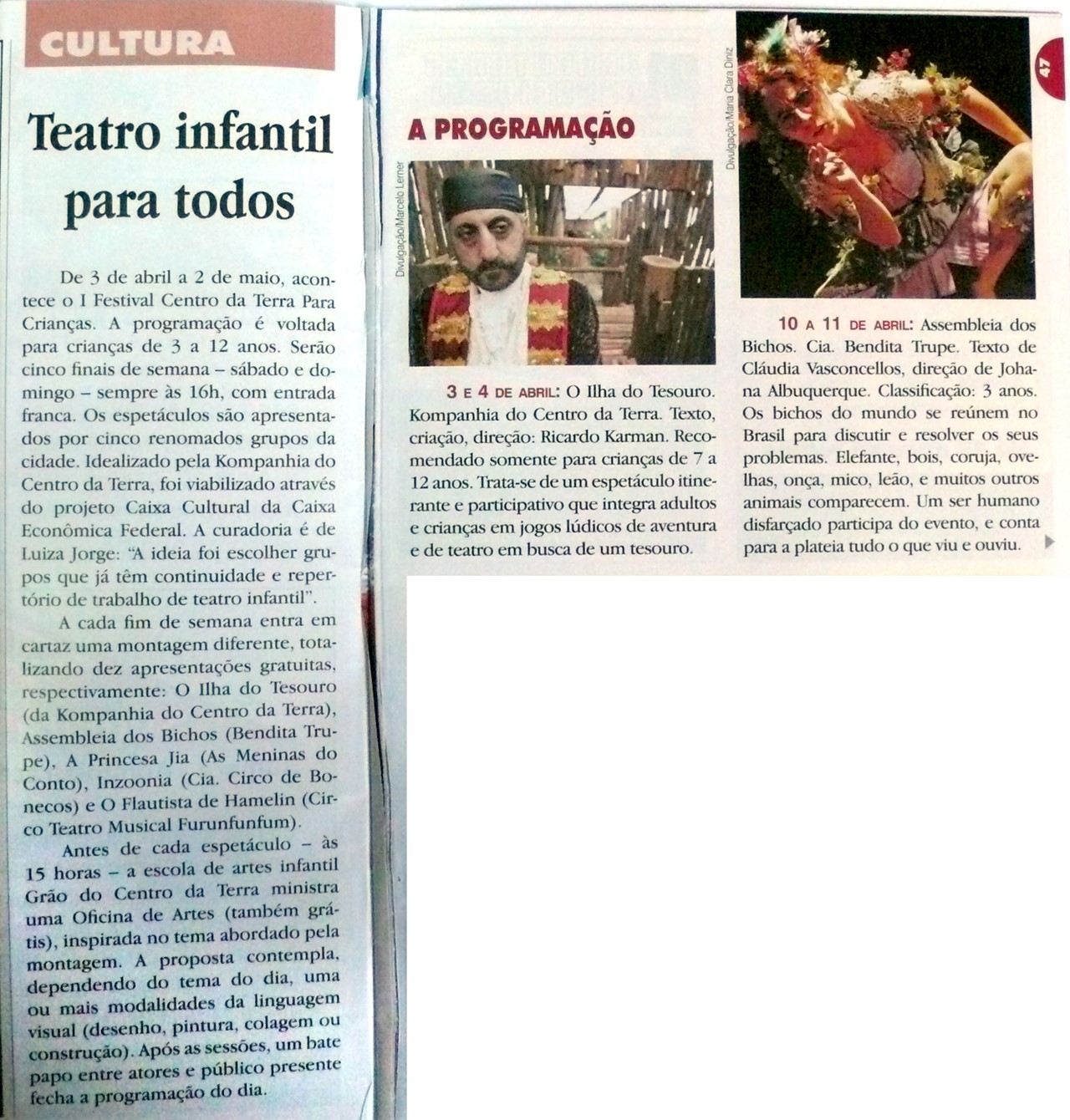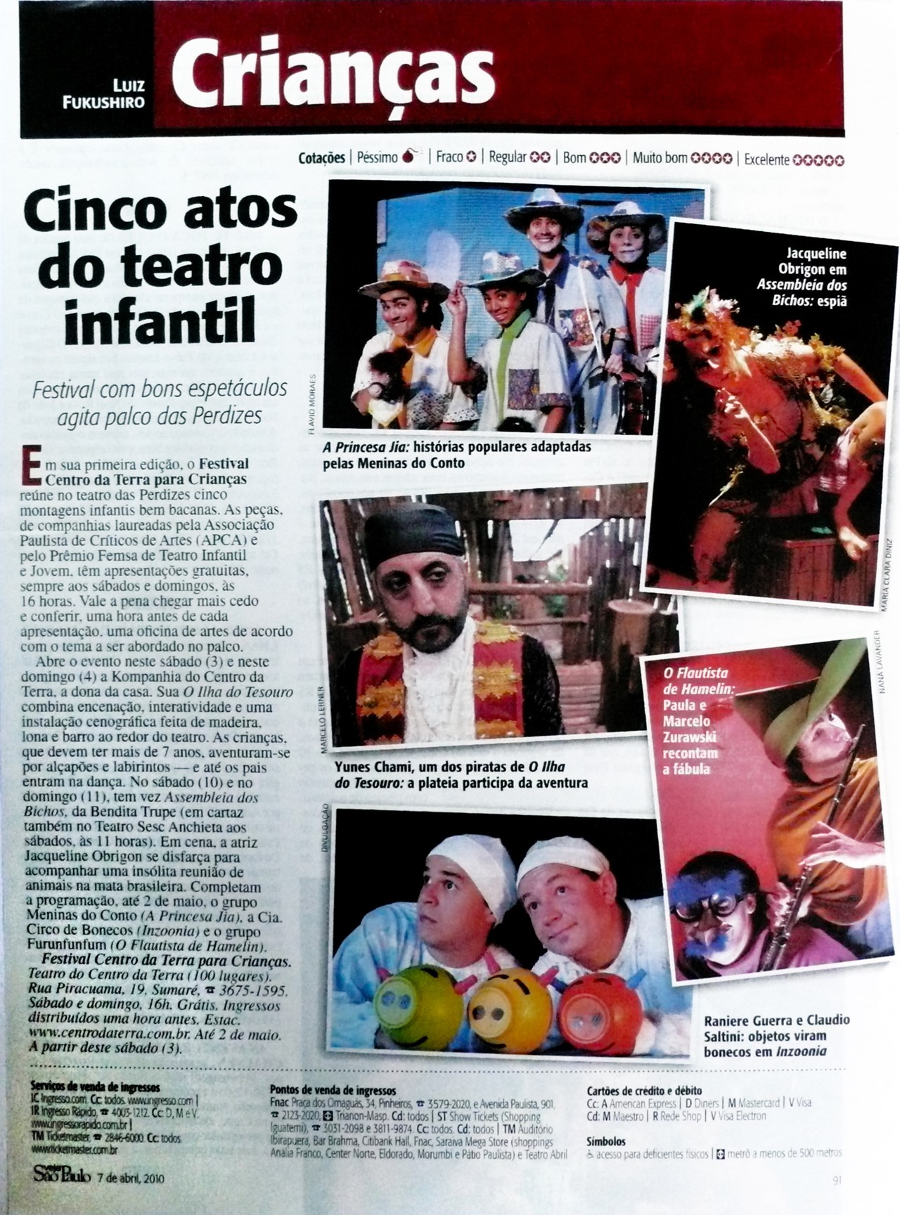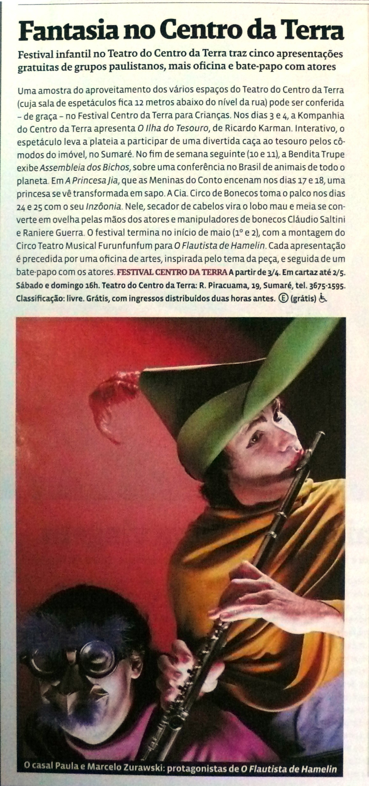 2010O I Festival Centro da Terra Para Crianças – viabilizado por meio do projeto Caixa Cultural da Caixa Econômica Federal – apresenta uma programação voltada para crianças de 3 a 12 anos, formada por espetáculos de cinco renomados grupos paulistanos. O Festival foi idealizado por pela Kompanhia do Centro da Terra com curadoria de Luiza Jorge.