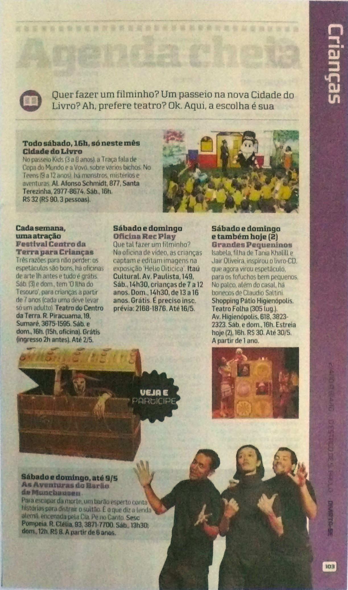 Antes de cada espetáculo – às 15 horas – a escola de artes infantil Grão do Centro da Terra ministra uma Oficina de Artes (também grátis), inspirada no tema abordado pela montagem, e, após as sessões, um bate papo entre atores e público presente fecha a programação do dia.